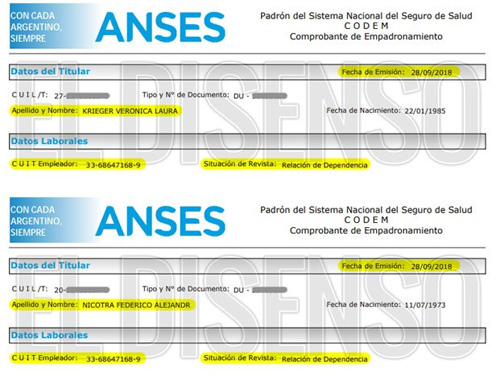 Como publicó el portal El Disenso ambos son empleados públicos del ANSES, ambos pertenecen a la dependencia de la “Superintendencia de Riesgos del Trabajo”.