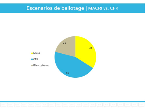 En un enfrentamiento entre Cristina Fernández y Mauricio Macri el resultado podría no ser el esperado para el actual Presidente. Esto si toma en cuenta el amplio porcentaje de votos en blanco que siempre son menores. Pero que ya comienza a dejar ampliamente atrás al Gobierno.