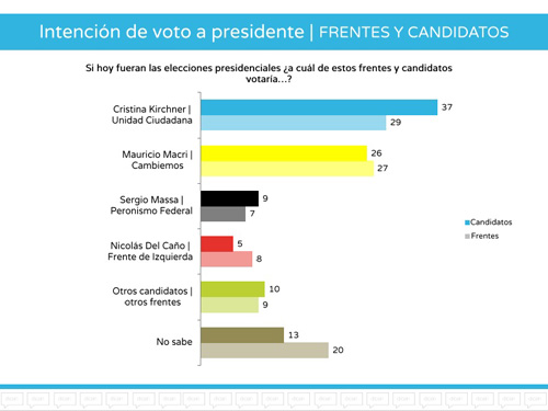 Pero si se observa la intención de votos, el oficialismo podría perder en todos los escenarios posibles. Algo que puede golpear fuertemente las intenciones de la reelección de Macri.
