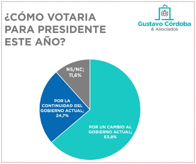 El dato es contundente: un 63,8% de los argentinos votaría por un cambio al gobierno actual, mientras poco menos del 25% lo haría por la continuidad de Cambiemos.
