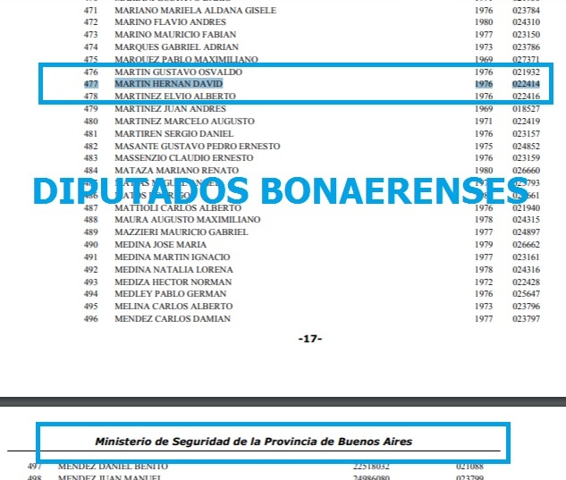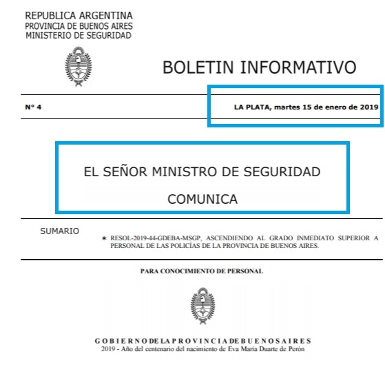 Así queda de relieve en el Boletín Informativo del Ministerio de Seguridad de la Provincia de Buenos con fecha del 15 de enero de 2018. El apuntado como líder de la banda presuntamente compuesta por ocho miembros de la Policía de Cristian Ritondo tenía 43 años y portaba el legajo interno 22414.