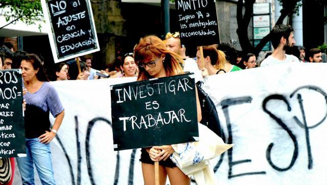 “Nosotros los becarios, que no somos considerandos trabajadores para el Conicet, estamos afuera, por eso empezamos a movilizarnos”. Foto: La Nueva Mañana
