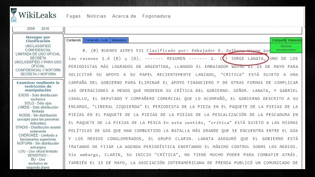 En la semana que detuvieron al creador de wikileaks, Julian Assange, en la embajada de Ecuador en Inglaterra repasamos qué decían los cables vinculados con Argentina. La embajada de Estados Unidos que se referían a Clarín, La Nación y nada menos que Jorge Lanata.