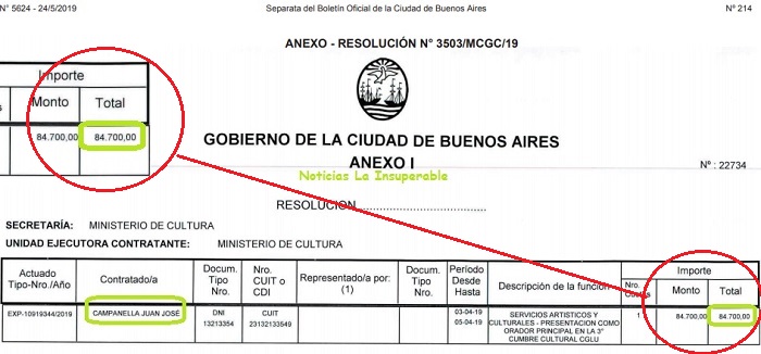 Hoy no enteramos a través de la RESOLUCIÓN N.º 3503/MCGC/19 que, estas “sabias” palabras del siempre adepto y defensor a ultranza del modelo de exclusión de Cambiemos, Juan José Campanella, le salieron a los bolsillos de los porteños la friolera de 84.700 pesos.