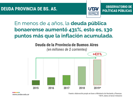 La deuda pública de la Provincia de Buenos Aires aumentó 431%, superando en 130 puntos la inflación acumulada.