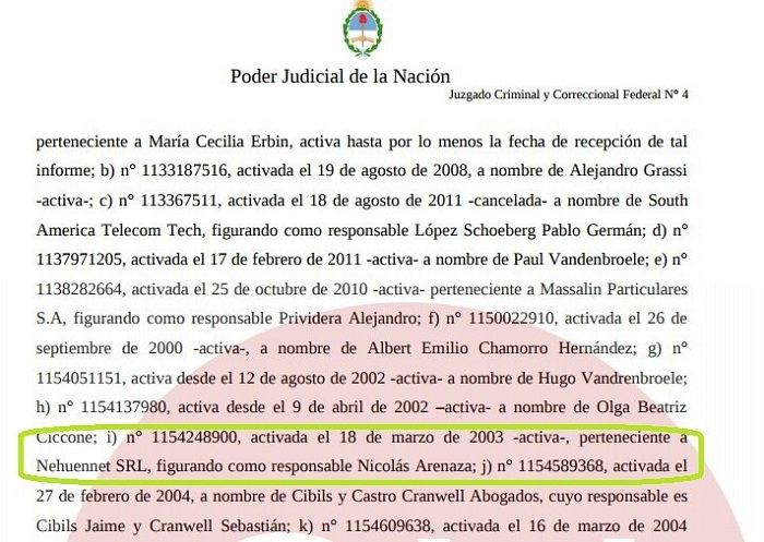 Hermano de Juan Pablo Arenaza es el empresario Nicolás Arenaza, dueño de Nehuennet S.R.L. (quien figura en la Causa Ciccone) y que supo casarse con Marcela Muñoz Tokatlian, hermana melliza de Laura Muñoz Tokatlian, ex esposa de Alejandro Vandenbroele, el denunciante de Amado Boudou.