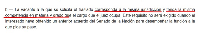 Si pedís el traslado a juzgados o tribunales con diferente jurisdicción o competencia, esa nueva designación es considerada por la doctrina y la propia Corte como un nuevo nombramiento. Y si es un nuevo nombramiento, tenes que volver al Senado para que este de un nuevo Acuerdo