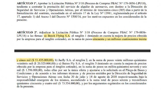 Algunos meses más tarde, la gestión de María Eugenia Vidal en Buenos Aires volvería a contratar los servicios de Beech Flying: con el objetivo de cubrir el supuesto déficit de aeronaves de la fuerza de seguridad bonaerense, el pasado 23 de octubre de 2018, el ministerio de Seguridad de la Provincia le adjudicó a Beech Flying unos $51.435.000 por 1.500 horas de vuelo de tres helicópteros tipo Robinson R44, entre los que se encontraba la aeronave del escándalo.