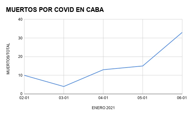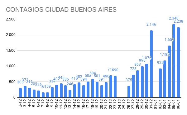 Una curva ascendente da un promedio de 1.668 contagios diarios en lo que va de la primera semana de enero. En un día se duplicó el número de fallecidos en CABA. A pesar que Larreta se encuentra aislado por estar infectado desde el gobierno porteño no creen necesario restringir la circulación.