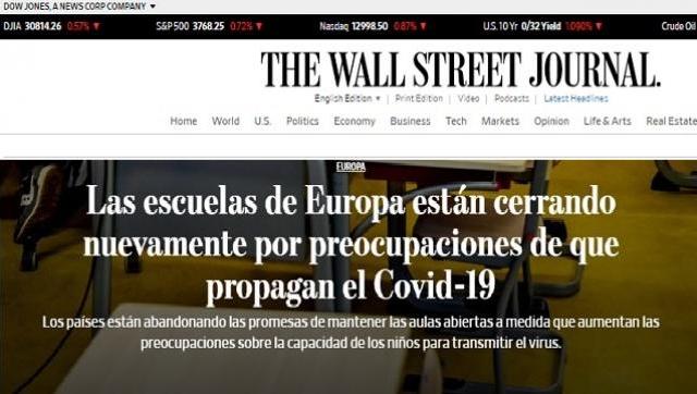(Ernesto Resnik @ernestorr) Según el Wall Street Journal de hoy, "hay un consenso emergiendo en Europa de que los niños son un factor considerable en la diseminación del virus de COVID y cada vez son más los países que cierran escuelas abandonando promesas de mantenerlas abiertas".
