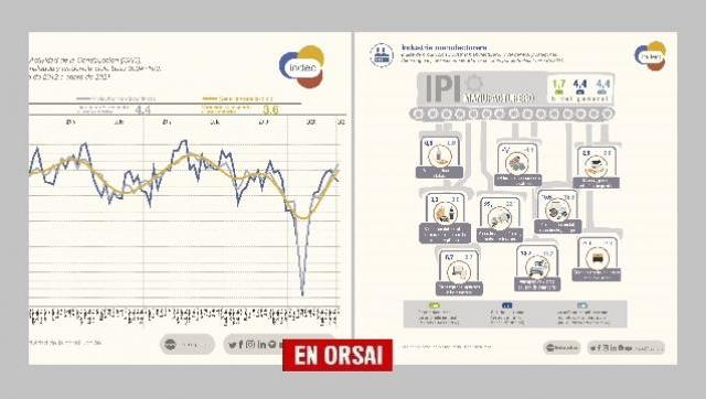 En términos interanuales, el Índice de Producción Industrial Manufacturero (IPI) registró así su tercera suba consecutiva y en la serie tendencia-ciclo aumentó 1,2% mensual y acumula nueve meses consecutivos en alza.