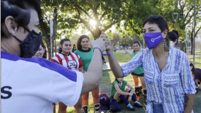 “Sabemos que históricamente las mujeres en el deporte fueron invisibilizadas por los medios de comunicación y la sociedad en general. Por eso buscamos exigir y fomentar la igualdad en todos los espacios donde participamos es una lucha que no podemos abandonar”, destacó la Mayra, quien dialogó con las mujeres que realizaban distintos deportes, y recibió una camiseta del club Juventud de Bernal de manos de sus autoridades.