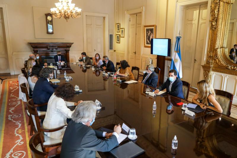 De la reunión participaron el jefe de Gabinete, Santiago Cafiero; las ministras de Salud, Carla Vizzotti, y de Seguridad, Sabina Frederic; los ministros del Interior, Eduardo de Pedro; de Defensa, Agustín Rossi; de Desarrollo Social, Daniel Arroyo; de Transporte, Mario Meoni, y de Turismo y Deportes, Matías Lammens.