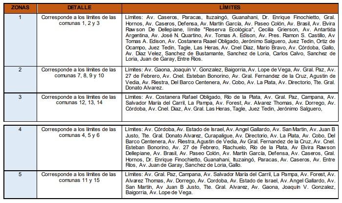 Las CINCO (5) Zonas responden a la siguiente subdivisión:
