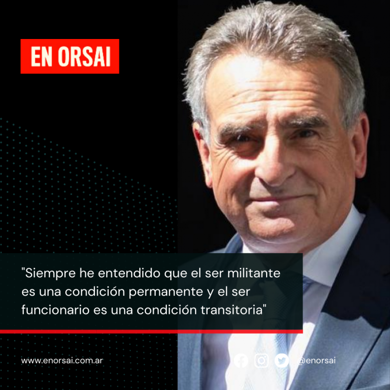 "Yo siempre he entendido que el ser militante es una condición permanente y el ser funcionario es una condición transitoria, podes ser funcionario en determinado momento, militante sos siempre. El militante no lo dejas, no tiene traje, el traje de militante lo llevas puesto como tu piel, el traje de funcionario a veces te toca tenerlo y a veces no te toca tenerlo y tenes que tomarlo con total naturalidad y normalidad."