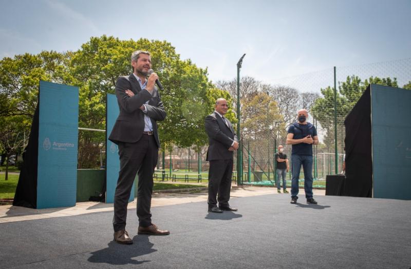 El jefe de Gabinete de Ministros de la Nación, Juan Manzur, y el ministro de Turismo y Deportes, Matías Lammens, entregaron hoy tarjetas del programa “Clubes en Obra” a entidades deportivas de la Ciudad de Buenos Aires, con el fin de que cada institución pueda comprar materiales y realizar obras de infraestructura y así brindar mejores condiciones a todos aquellos que asisten al establecimiento.