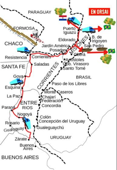 Desde las provincias de Córdoba, Santa Fe, Buenos Aires, Santiago del Estero caravanas de camiones se dirigen por la ruta en dirección a la provincia de Misiones,