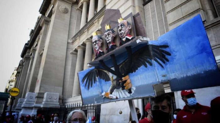 En medio de cánticos como «el pueblo unido jamás será vencido» y «mamá yo quiero, una justicia nacional y popular», los organizadores sostuvieron en el documento que «decimos que se tiene que ir porque esta Corte viene convalidando sistemáticamente las políticas neoliberales de destrucción y desmantelamiento de derechos humanos fundamentales» y «lo hace en plena articulación con los intereses del neoliberalismo global a los que sólo les interesa violar nuestra soberanía».