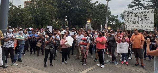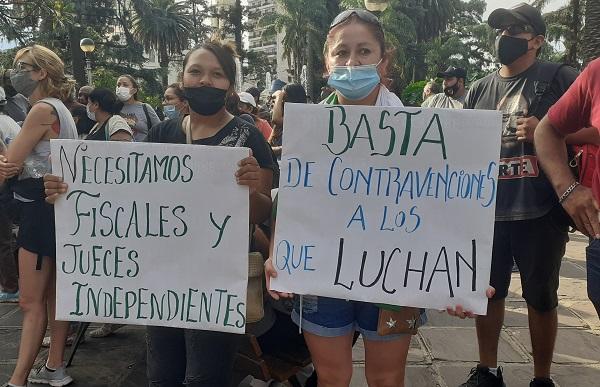 «Morales, basta de mafia judicial. Basta de contravenciones al pueblo que lucha. Por una justicia independiente y democrática» fueron las consignas que, reunidas en una bandera, encabezaron la movilización, que arrancó en la plaza Belgrano, marchó hacia el Ministerio Público de la Acusación y culminó en el edificio de Tribunales.
