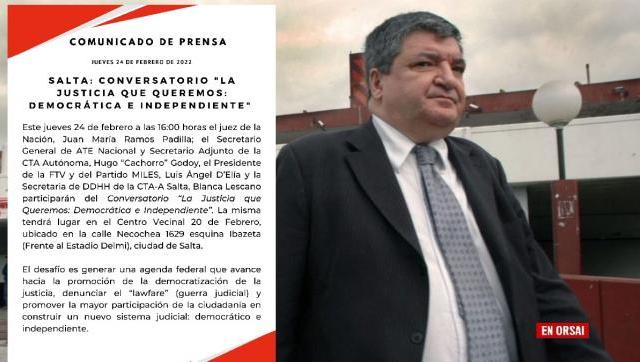 #SALTA #24Febrero #Hoy @Luis_Delia, @jramospadilla, @CachorroGodoy y Blanca Lescano, participarán del conversatorio: "La Justicia que Queremos Democrática e Independiente."
