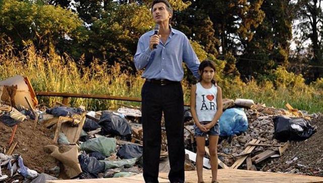 En aquella campaña hubo una foto que despertó gran polémica. Mauricio Macri se mostraba en un acto en un asentamiento del barrio porteño de Villa Lugano junto a una niña, en un basural, para hablar de la pobreza.