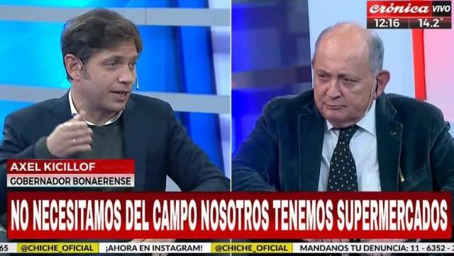 Allí, posteó una captura de pantalla en la que se lo ve en un programa de televisión del canal Crónica, junto al periodista Samuel "Chiche" Gelblung, con un videograph que le atribuye los dichos: "No necesitamos del campo, nosotros tenemos supermercados".
