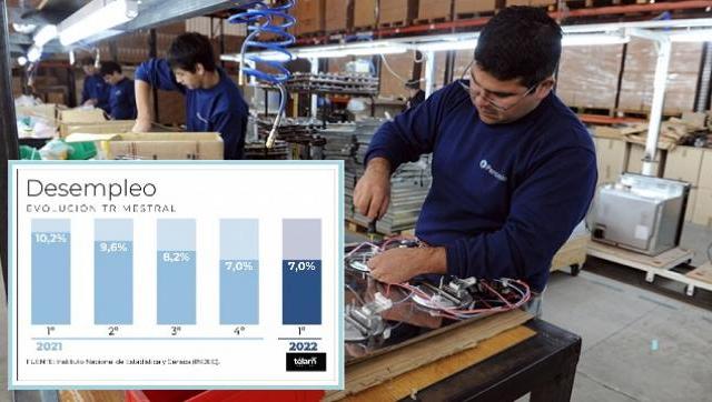 La tasa de desocupación se ubicó en el 7% al cierre del primer trimestre del año, con una merma de 3,2 puntos porcentuales respecto al 10,2 % de igual periodo del 2021, informó hoy el Instituto Nacional de Estadística y Censos (Indec).