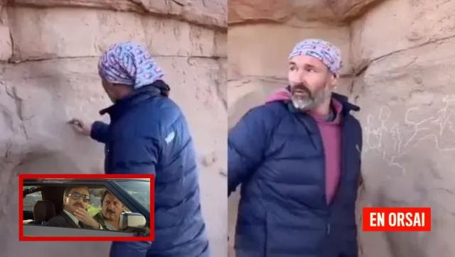 “Estoy haciendo jeroglíficos para que sepan mis sucesores que yo estuve acá y crean que lo hice por algo específicamente y que tiene un significado. Total, esto dura 2500 años”, admite el hombre en el video que subió a las redes el usuario @joacandussi.