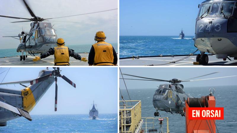 También se informó la realización de ejercicios de lanzamiento y recuperación de aeronaves en la cubierta de vuelo con los helicópteros Sea King dependientes de la Segunda Escuadrilla Aeronaval de Helicópteros (EAH2) que el viernes pasado, en la zona del faro El Rincón, se sumaron al rompehielos ARA “Almirante Irízar”.