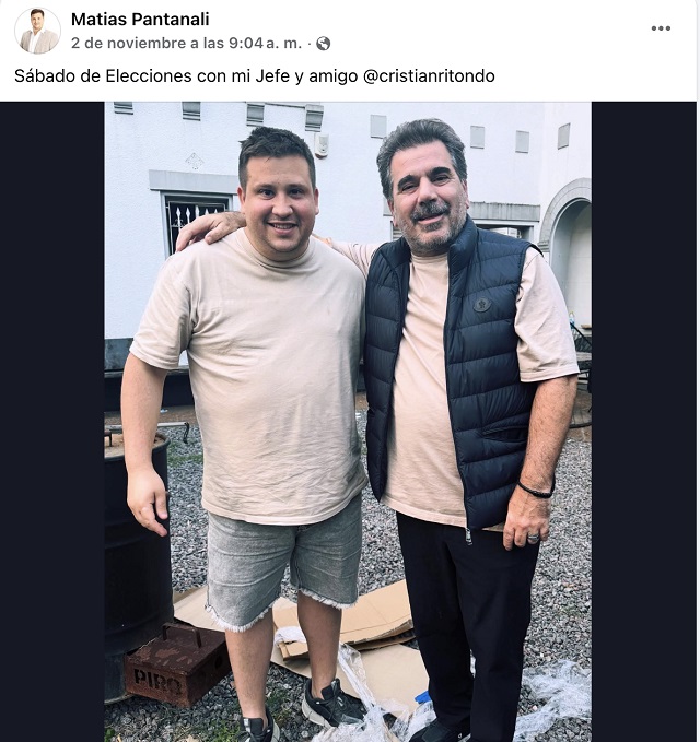 ¿Quién es Pantanali? Volosin lo describe como el hijo de Ester “Niti” Iglesias, histórica referente territorial de la Comuna 8, sindicado en la nota como “puntero” clave del ascenso político de Ritondo y actual vice de una organización para el “desarrollo” que administra recursos y personal en el sur de la ciudad.[web:416] En sus redes, Pantanali se refiere a Ritondo como su “jefe”, su “amigo” y alguien con quien “compartió toda una vida”.