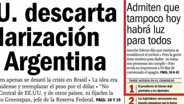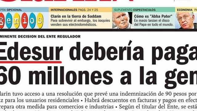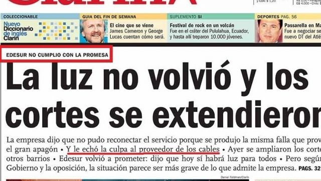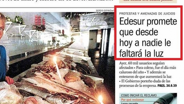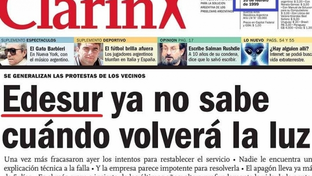 En 1999, ante un gigantesco corte de luz, que afectó a 600.000 personas durante más de 11 días en la ciudad de Buenos Aires, el Multimedios centralizó las responsabilidades en la empresa distribuidora, editando siete tapas consecutivas culpando a Edesur.