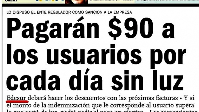 -"Edesur debería pagarle 60 millones a la gente", lunes 22 de febrero.