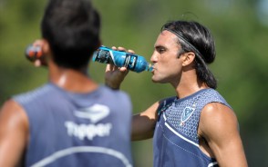 El entrenamiento de hoy se realizó en la cancha central de la Villa Olímpica, con una práctica formal de fútbol, que terminó con victoria 1 a 0 de los titulares con un tanto de Mauro Zárate.