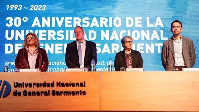 “Esta es una de las 57 universidades públicas que tiene nuestro país y hay una decisión política detrás de crear universidades”, sostuvo Perczyk y destacó que a esa decisión “se suma el trabajo de estudiantes, autoridades, docentes y nodocentes y el de toda una comunidad”. “Aquí tenemos 30 años de trabajo, de pensar, de reflexionar, de construir, escribir, hacer y deshacer de miles de graduados y centenares de docentes y nodocentes que pensaron que acá iban a encontrar un presente y un futuro mejor”, resaltó el ministro de Educación.