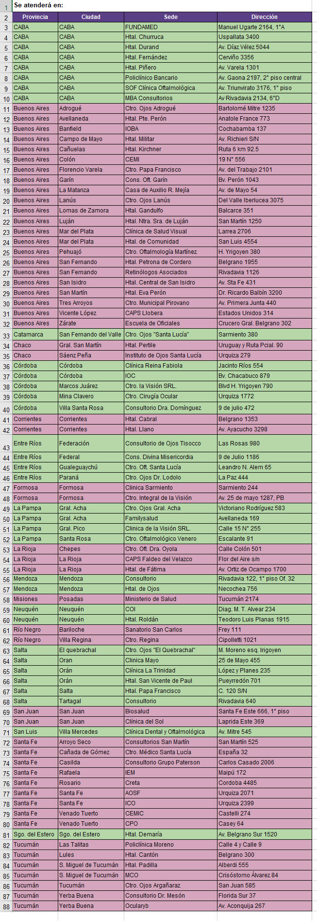 Vale destacar que el registro de sedes es un acto voluntario y que los médicos oftalmólogos que participan de esta campaña no perciben honorarios por su trabajo.