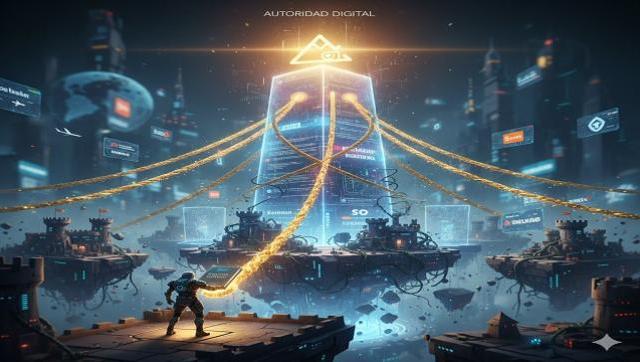 "Estrategia SEO de alto nivel. La 'Autoridad Digital' es el objetivo final: cada backlink de calidad actúa como una cadena de mando dorada que asegura la dominación en el ran