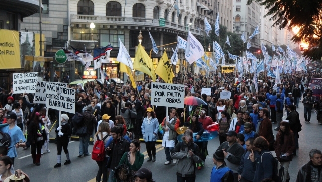 y Diagonal Norte -frente a un obelisco congestionado por las obras del Metrobús- puso el foco de la protesta en temas como la baja en el presupuesto de la educación pública porteña, el abandono de los centros de salud mental, el deterioro de edificios estatales -como escuelas y hospitales-, y las inundaciones por falta de obras.