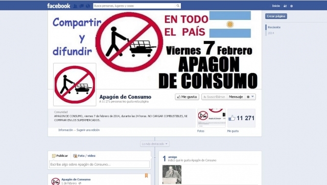 La iniciativa, denominada "Apagón de consumo", fue lanzada en facebook el sábado 1 de febrero y en 72 horas alcanzó más de 288.177 adherentes que compartieron la propuesta en sus perfiles y más de 10.900 fans.