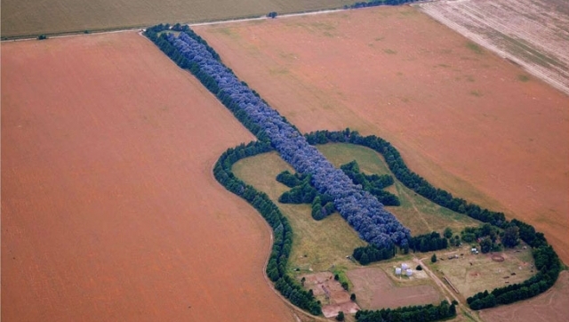 Cuando los pilotos sobrevuelan las fértiles tierras de la pampa argentina, a menudo se sorprenden al ver un gran bosque con forma de guitarra en medio de los cultivos. Una guitarra que es el testimonio de un amor perdido.